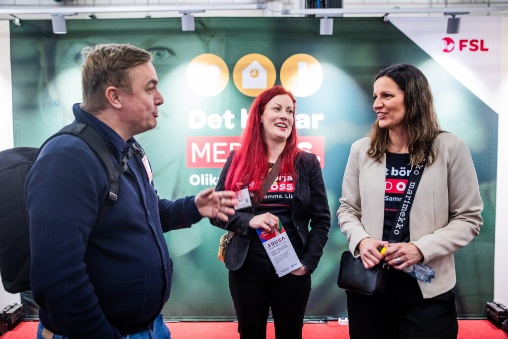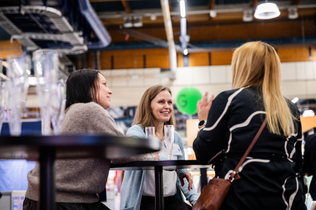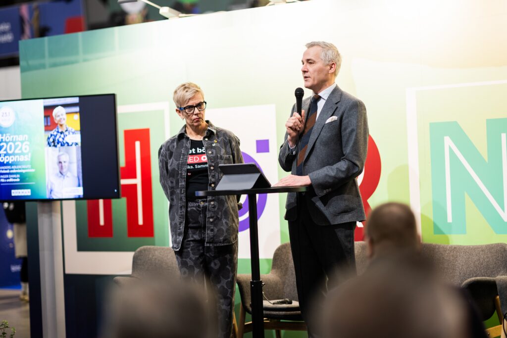 Det är gott om besökare och glada tillrop redan när FSL:s ordförande Inger Damlin och undervisningsminister Anders Adlercreutz (SFP) öppnar Hörnan. Temat för årets mässa är ”berättelser som bygger framtiden”.
